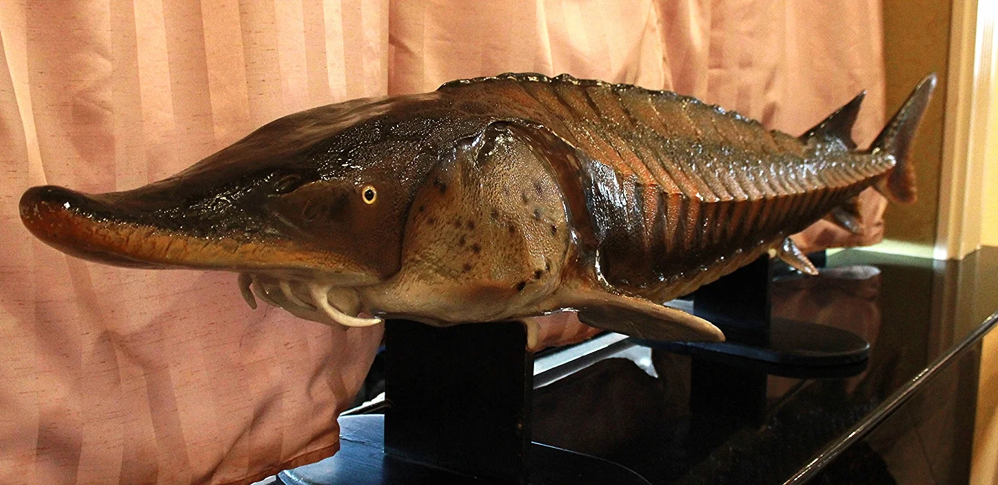 An Atlantic Sturgeon replica on display at Thursday's Hudson River Summit. Photo by William Shannon
