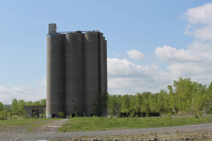 These silos are the skeletons of the great Hudson River Cement Works. The area made its name in the 19th century as one of the largest cement fabrication centers in North America, as seven large mining operations and associated plants spat out world-renowned product on the West bank of the Hudson. Hudson River Cement mined the lime for the cement in Rosendale, then shipped it ten miles north to East Kingston, using rail lines and the Delaware and Hudson Canal. The second component to cement—clay—was mined there, and the components were mixed and processed into the final product, which was then loaded onto boats in the Hudson. Rosendale Cement—the general term for cement from this area—built the base of the Statue of Liberty, the Brooklyn Bridge, Federal Hall in New York City and one of the wings of the United States Capitol. The industry fell into decline in the early 1900s, and, like most of the industry north of Westchester County, remains that way.
